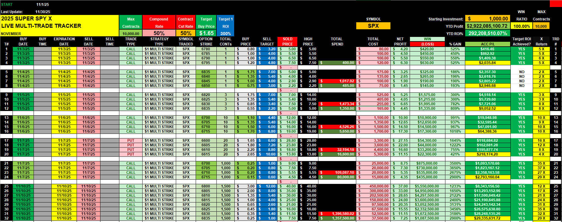 Nov 2025 Multi-strike Model Portfolio Spreadsheet Results made up to $2.92 BILLION!