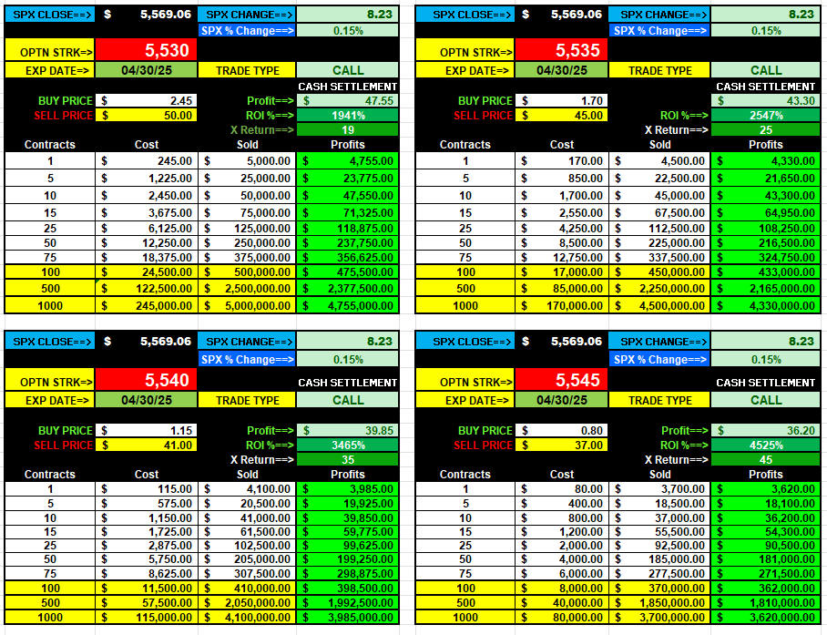 4-30-25 EOD LOTTO TRADES: