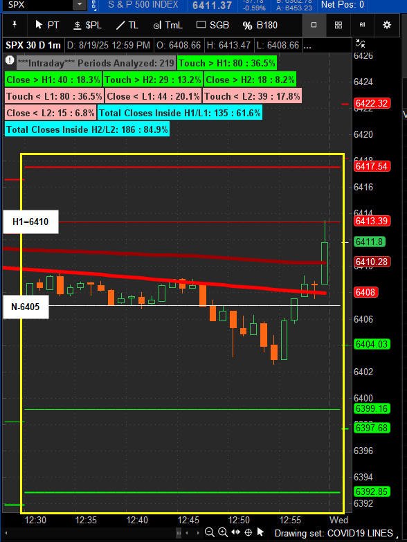 12:30 PM PST - Quant Pivot lines: Neutral =6405 H1=6410 — CLOSE - 6411.37 (-37.78 -0.59%)