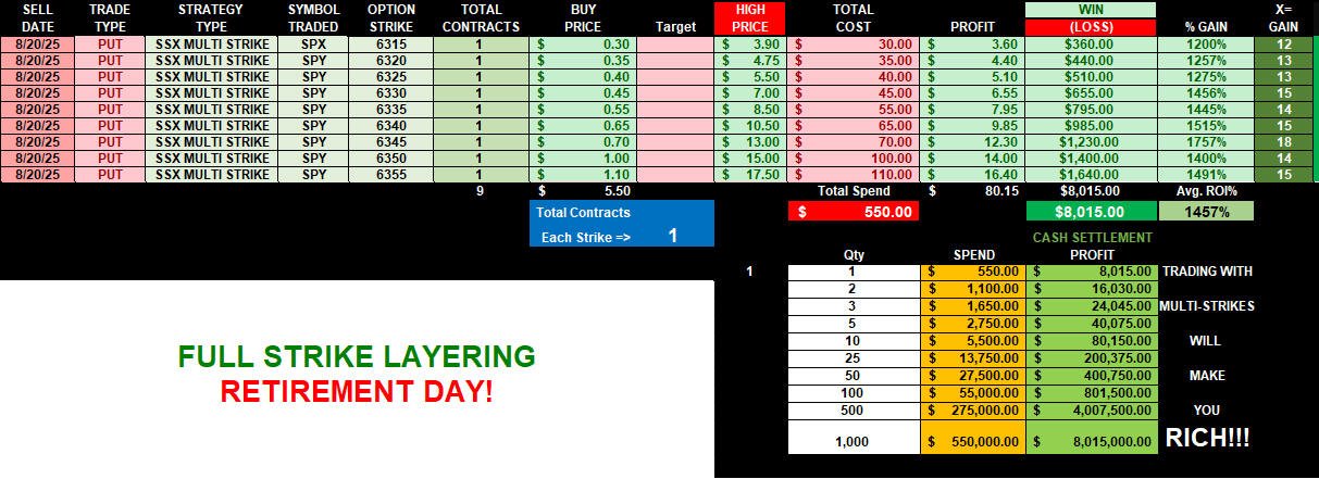$1.00 Opening Formula Strike Ranges: CALLS 6455 / PUTS 6355