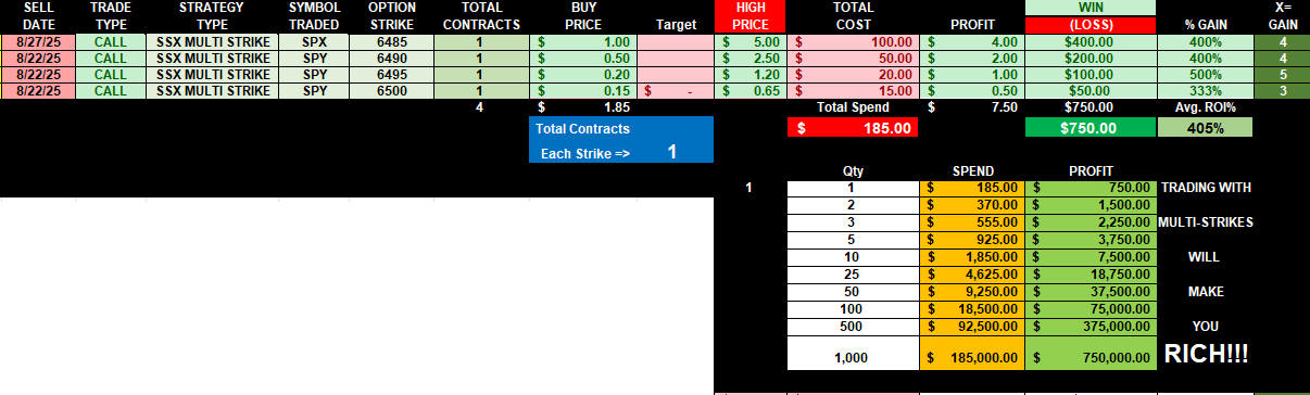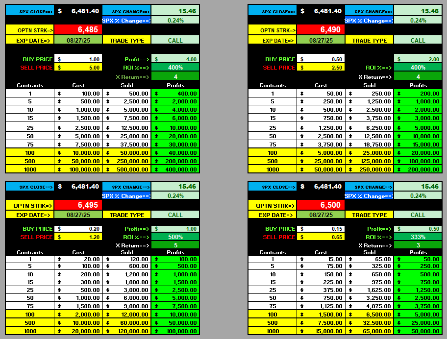 $1.00 Opening Formula Strike Ranges: CALLS 6510 / PUTS 6410