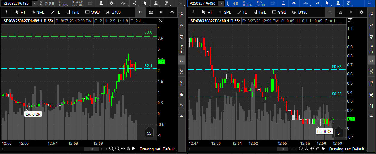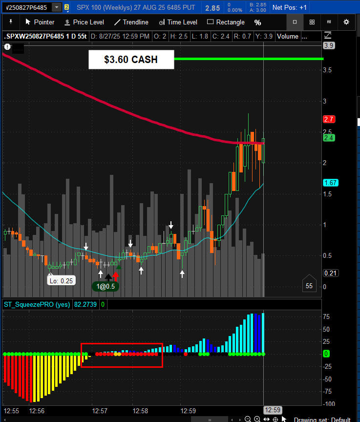 Today, the SPX pumped up after 12:50 imbalances giving us a nice opportunity to get the 85 / 80 PUT strike and
