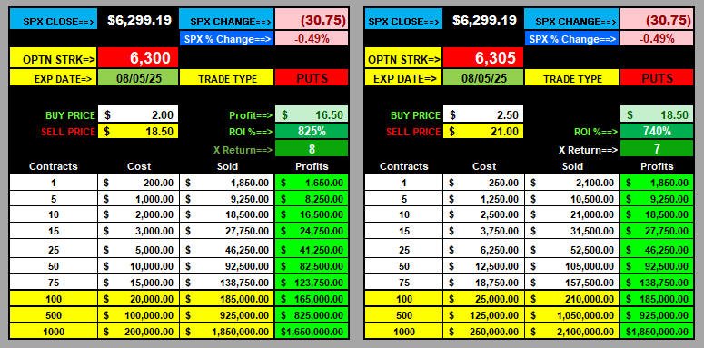 $1.00 Opening Formula Strike Ranges: CALLS 6320 / PUTS 6220