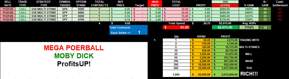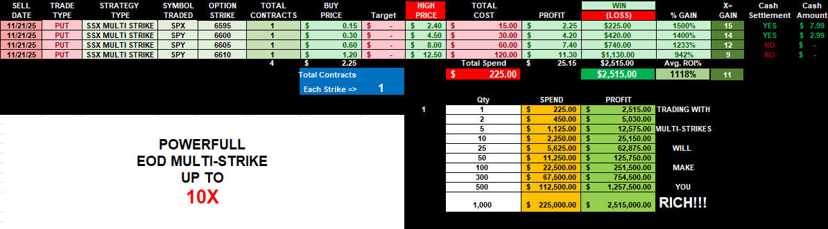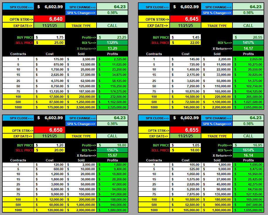 $1.00 Opening Formula Strike Ranges: CALLS 6605 / PUTS 6505