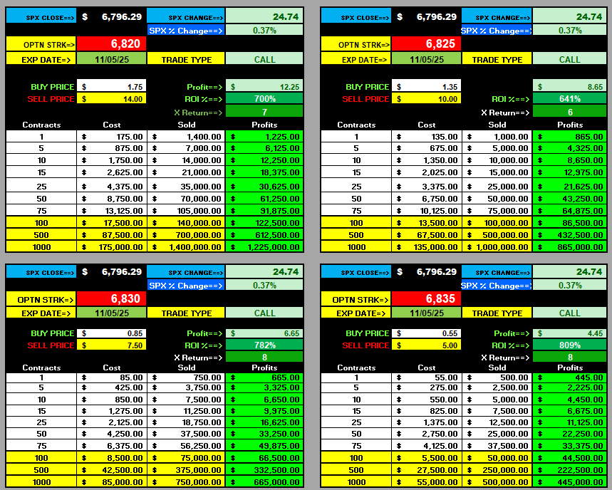 $1.00 Opening Formula Strike Ranges: CALLS 6820 / PUTS 6720