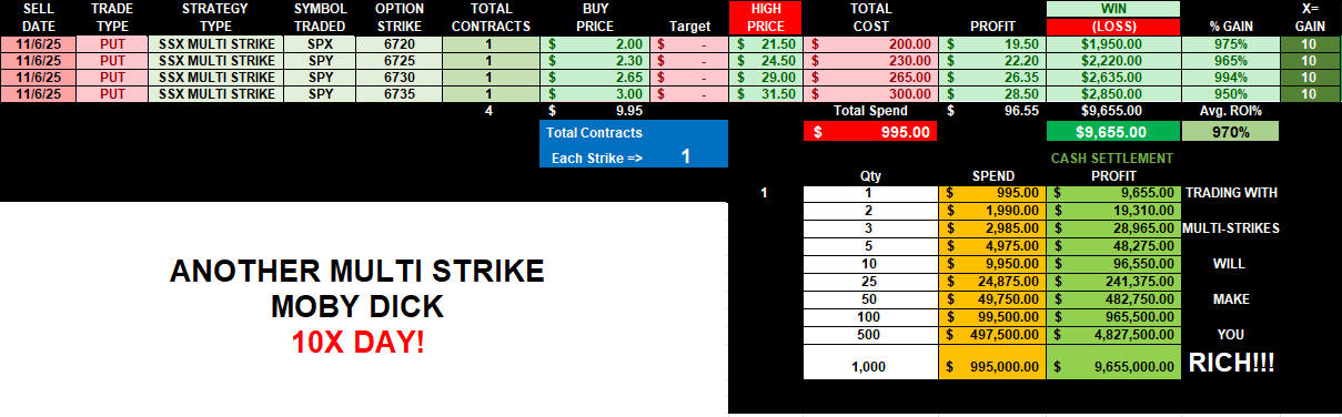 Today, the puts were another Moby Dick day with cash settlement; however, you had to be in just before 12:30PM PST to get lowest entry price.