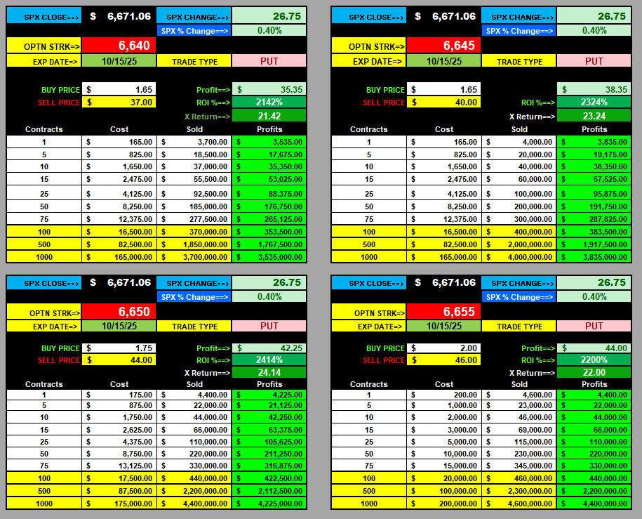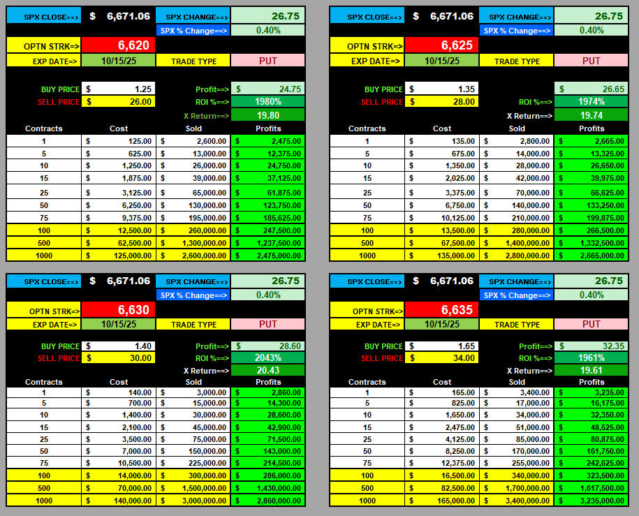 $1.00 Opening Formula Strike Ranges: CALLS 6740 / PUTS 6640