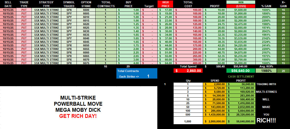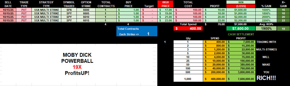 DoubleUP! Moby Dick POWERBALL day with PUTS