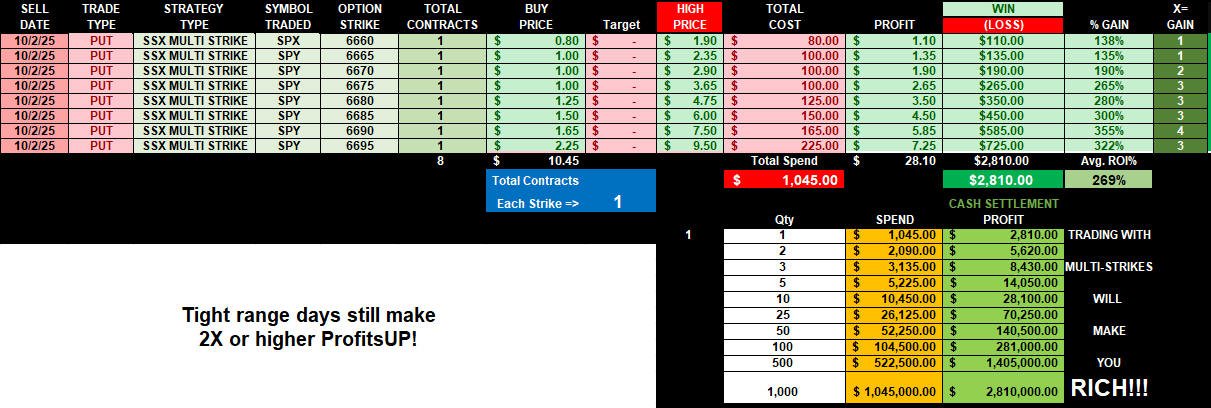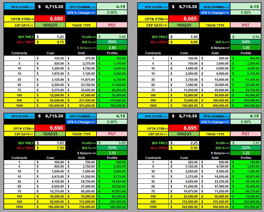 $1.00 Opening Formula Strike Ranges: CALLS 6780 / PUTS 6680