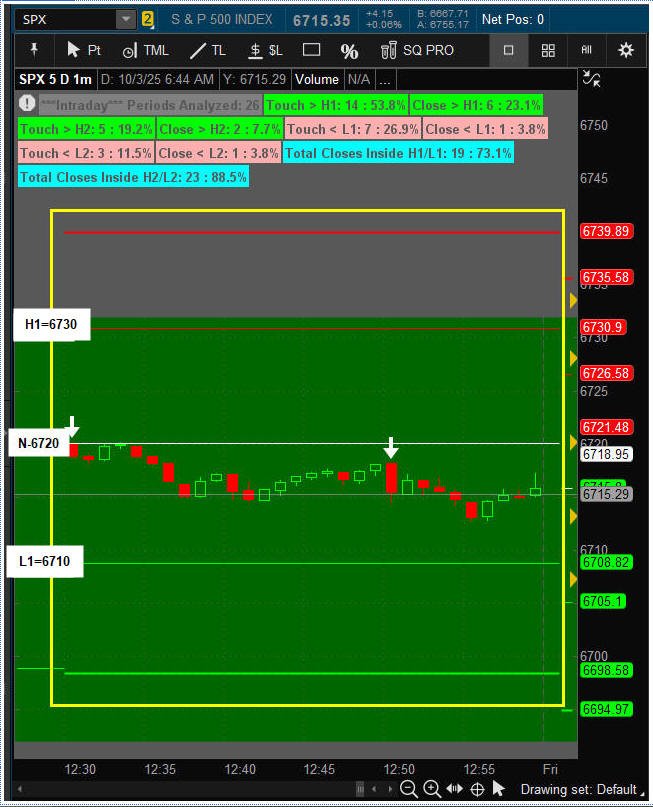 12:30 PM PST - Quant Pivot lines: Neutral = 6720 H1= 6730 L1= 6710 —