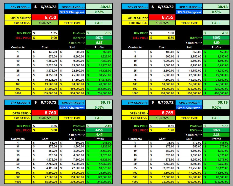$1.00 Opening Formula Strike Ranges: CALLS 6775 / PUTS 6675