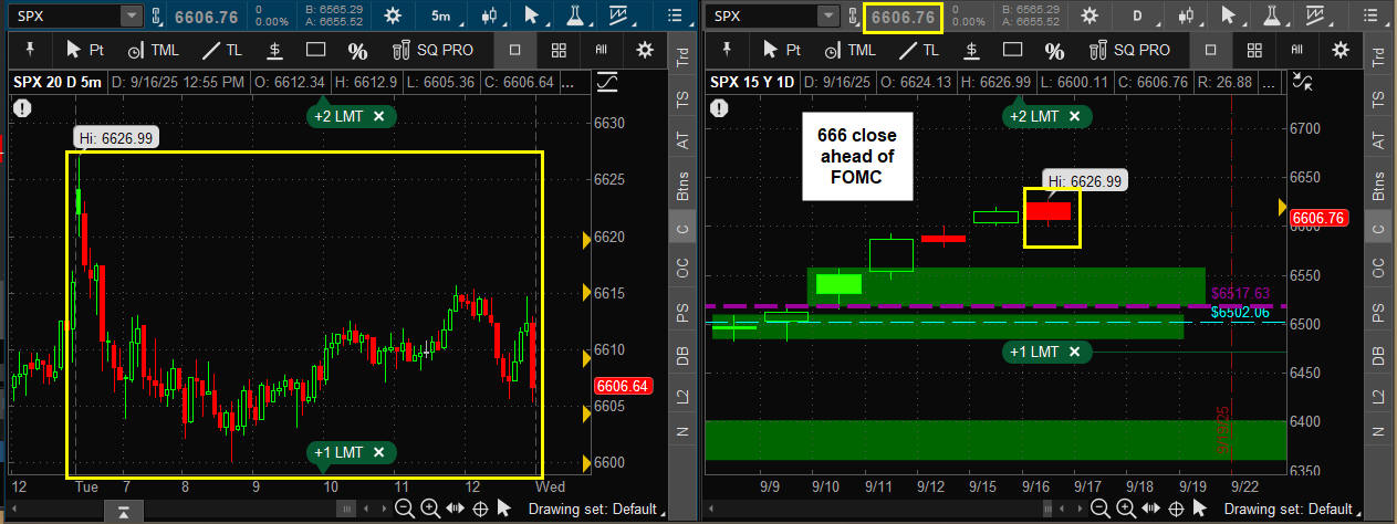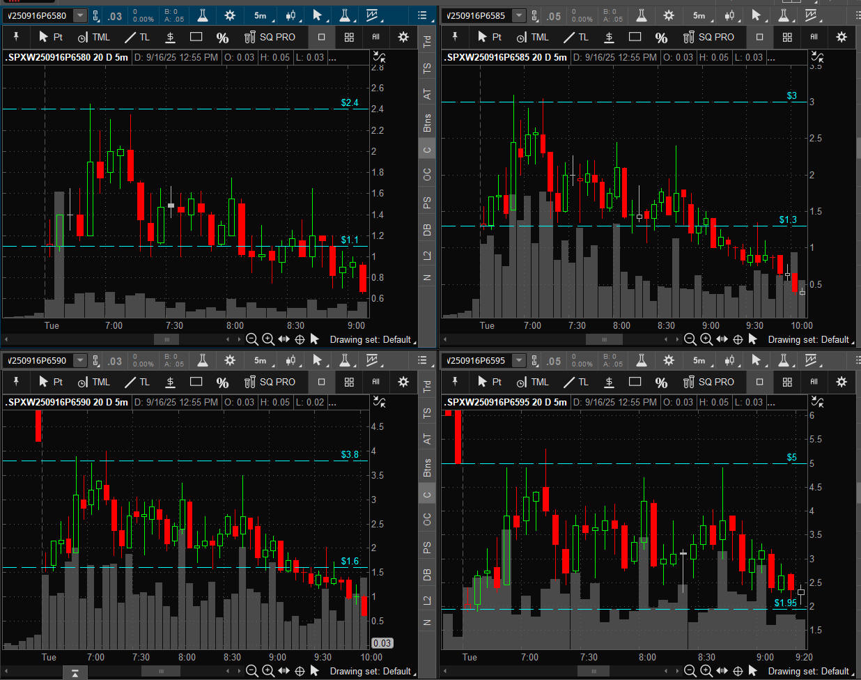 I expect a tight range morning, and I am currently straddled with spreads. I have 6575 / 6565 DITM CALL spreads that expire tomorrow and 6660 / 6665 DITM PUT spreads that expire on Friday.