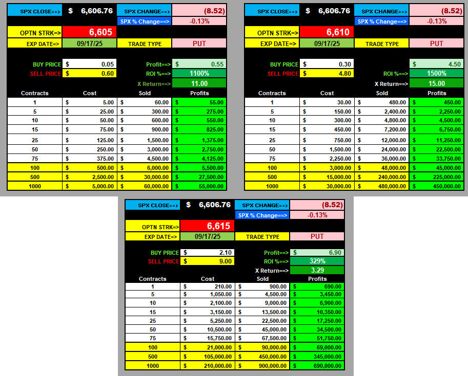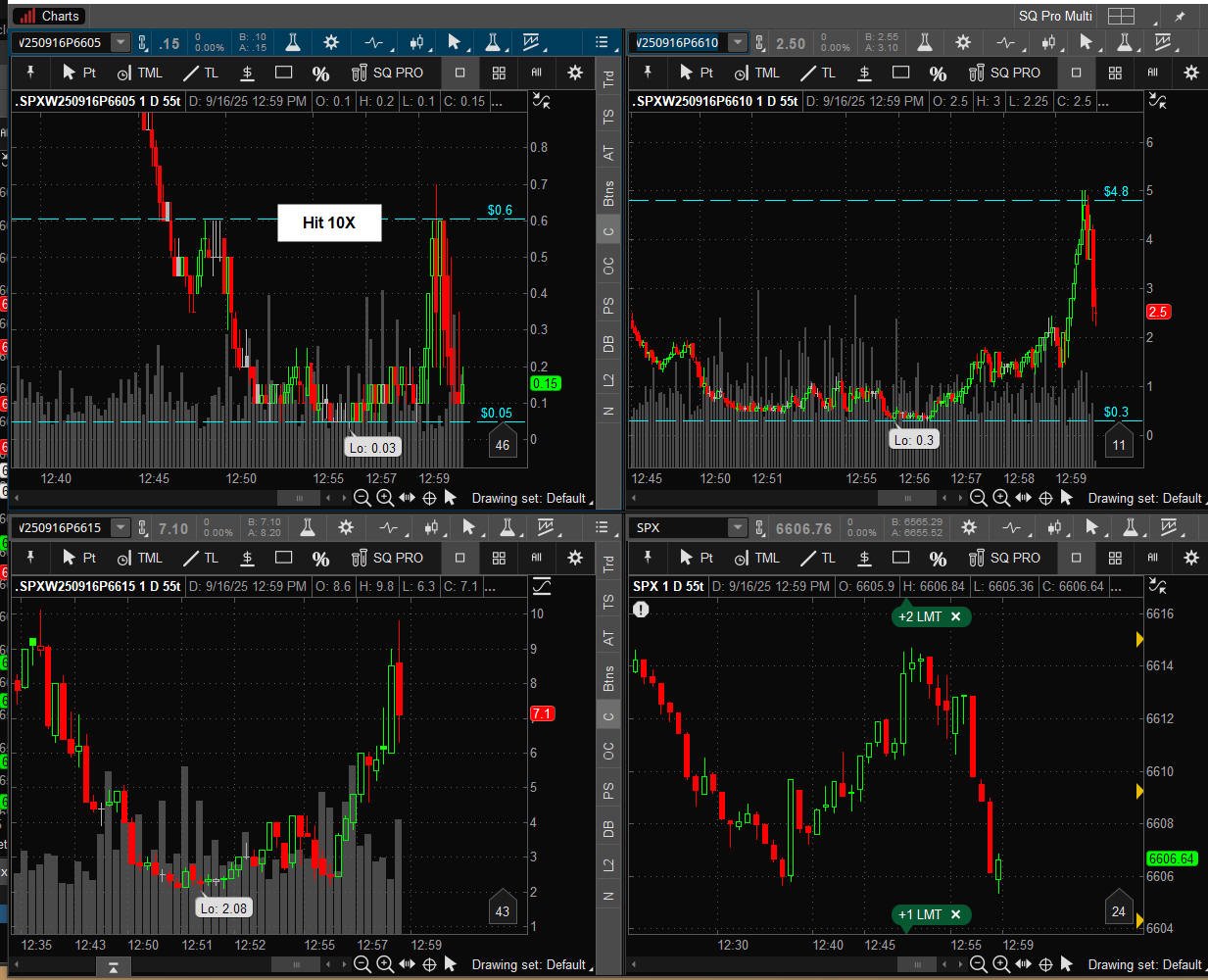 Today, the 6605 PUT hit the $0.05 CENT and rocketed 10X. The 6610 also made an impressive 15X move.