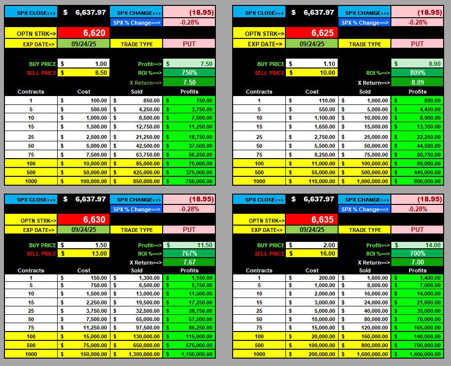 $1.00 Opening Formula Strike Ranges: CALLS 6720 / PUTS 6620
