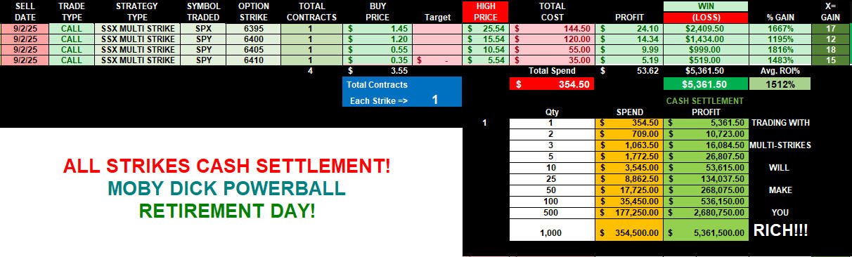 Other CALL strikes that fit the $1 Formula buy ranges: MOBY DICK POWERBALL DoubleUP! day $$$$$$$$$$