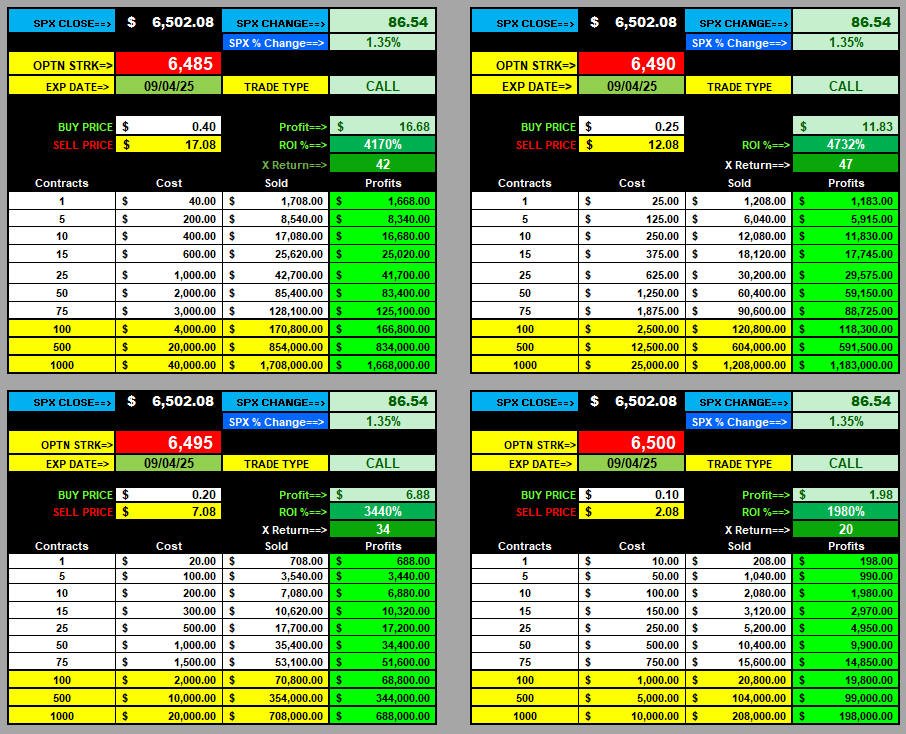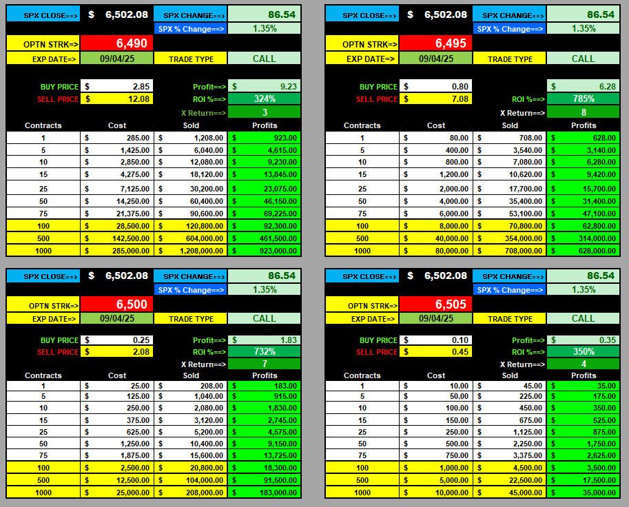 $1.00 Opening Formula Strike Ranges: CALLS 6500 / PUTS 6405