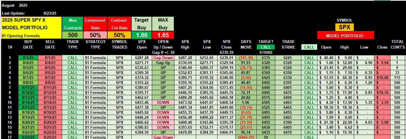 Aug 2025 CALL Model Portfolio Spreadsheet Results Currently up to $3.70 MILLION!