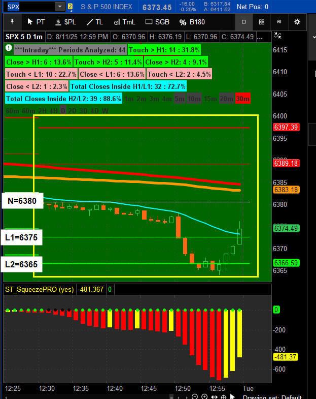 12:30 PM PST - Quant Pivot lines: Neutral =6380 L1=6375 L2=6365 — CLOSE - 6373.45 ( -16.00 -0.25%) — Days Range: 58.98
