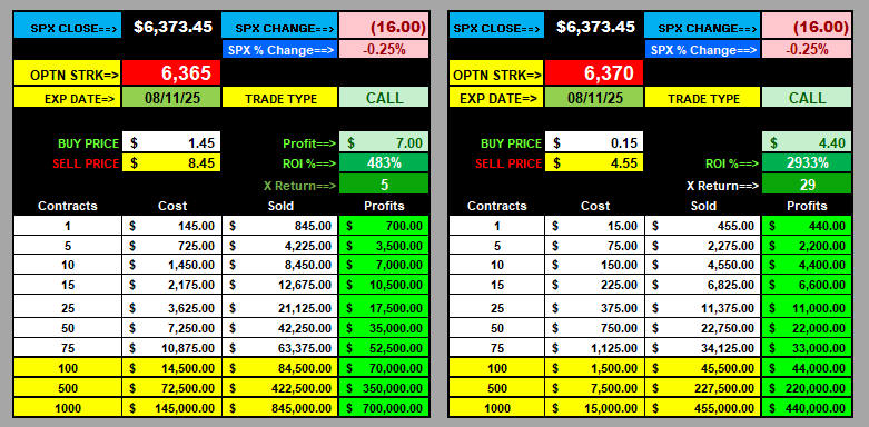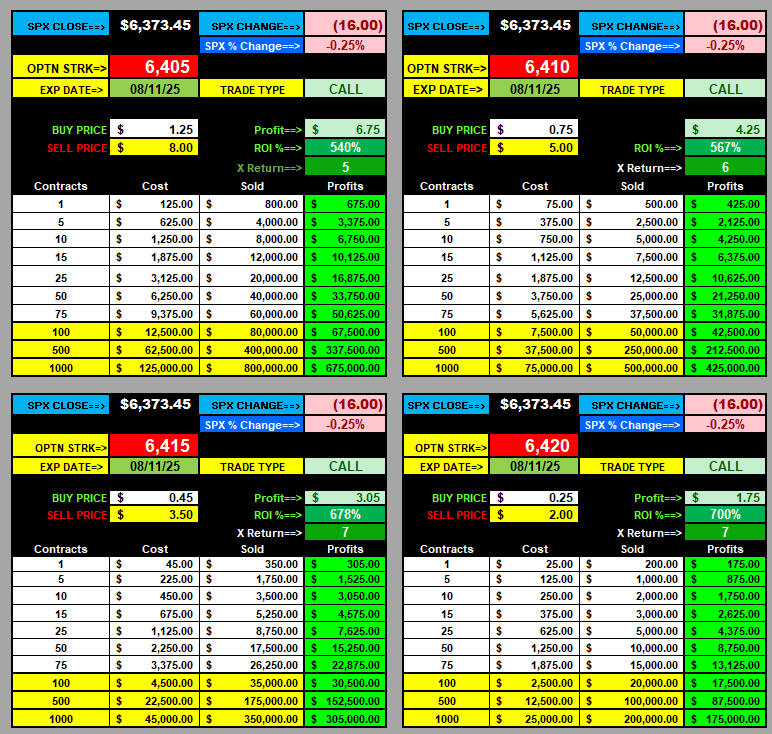 $1.00 Opening Formula Strike Ranges: CALLS 6440 / PUTS 6340