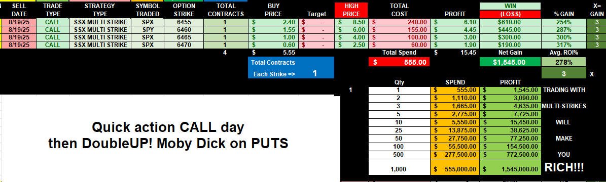 Moby Dick DoubleUP! day on the PUT strikes that fit the $1 Formula buy ranges:
