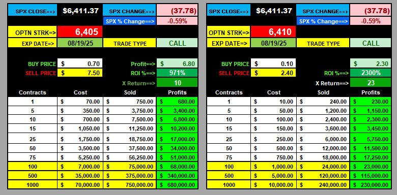 $1.00 Opening Formula Strike Ranges: CALLS 6495 / PUTS 6395