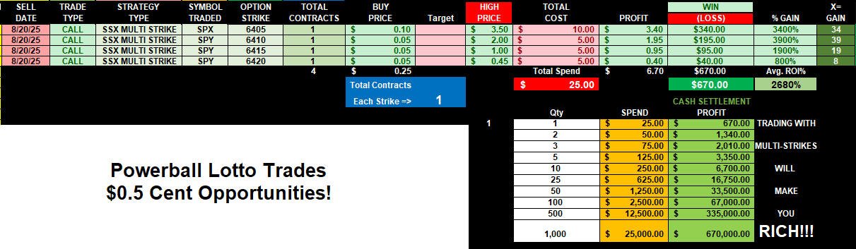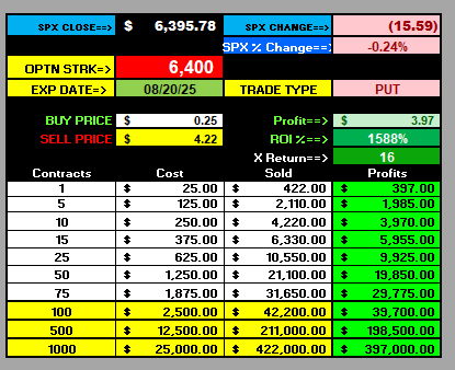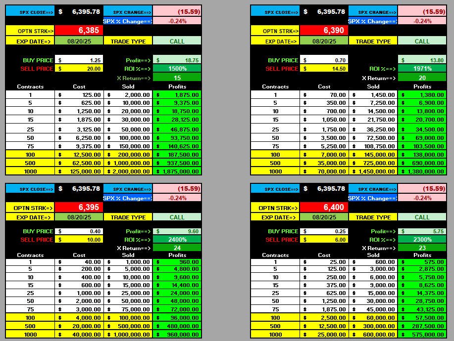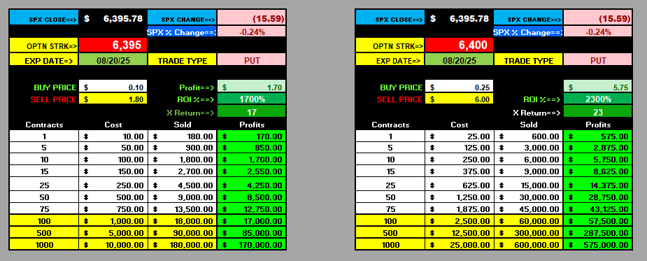 $1.00 Opening Formula Strike Ranges: CALLS 6455 / PUTS 6355