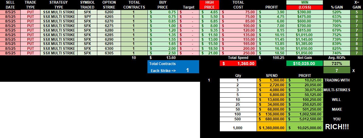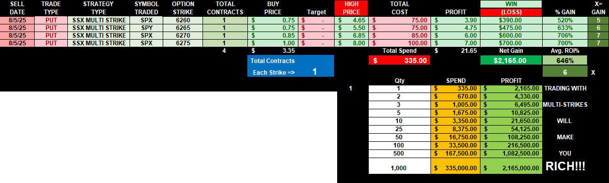 $1.00 Opening Formula Strike Ranges: CALLS 6320 / PUTS 6220