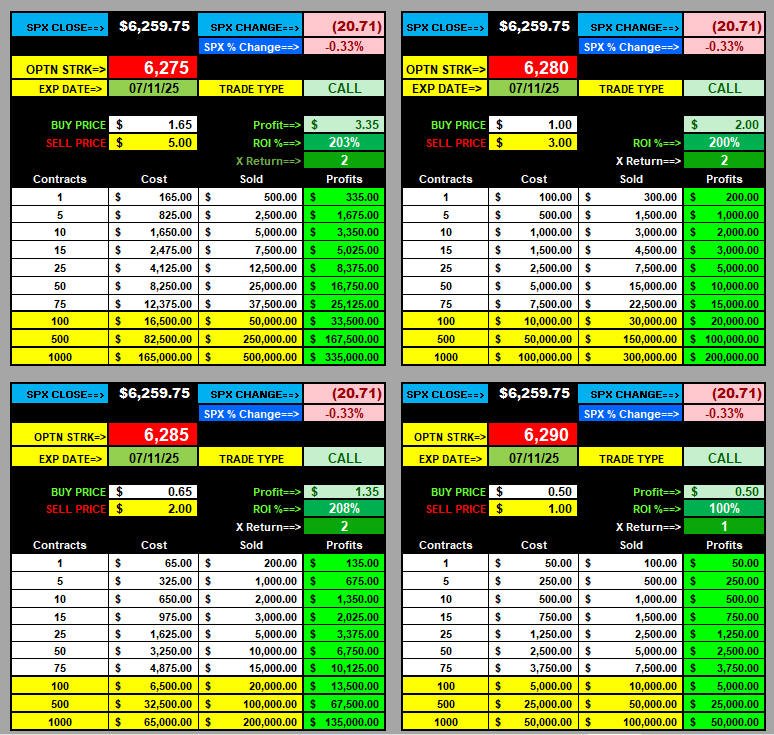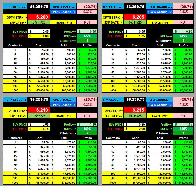 $1.00 Opening Formula Strike Ranges: CALLS 6305 / PUTS 6205