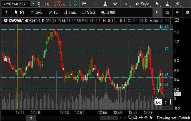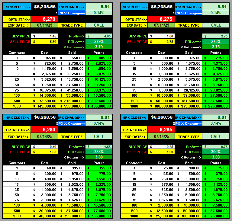Today, the SPX held a tight range around neutral but still managed a 2-3X ROI on the QP Neutral 6270C strike: