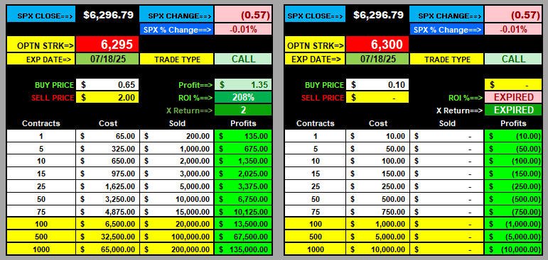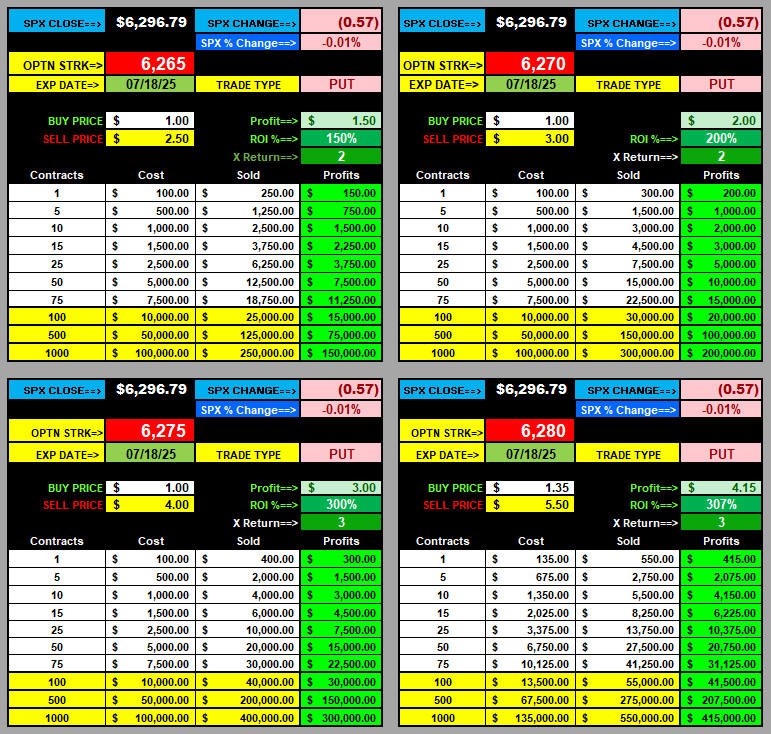 $1.00 Opening Formula Strike Ranges: CALLS 6365 / PUTS 6265