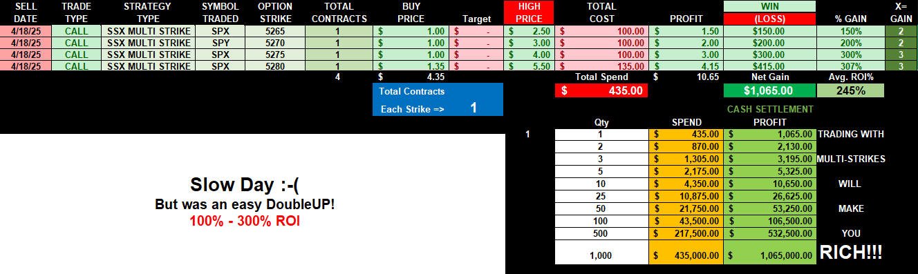 It is a game of patience, consistency and discipline to get the orders on every single day until you catch and compound. The you can multi-strike with layers and it will be GAME ON for the land of 6-Figure profitability!