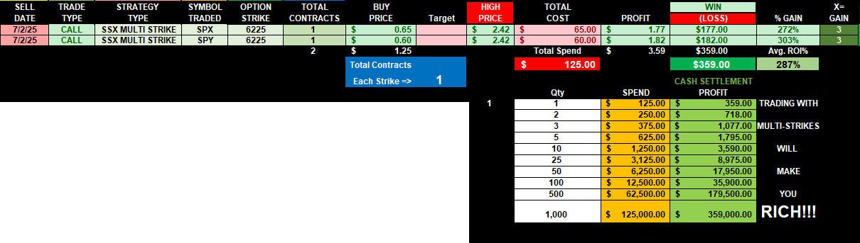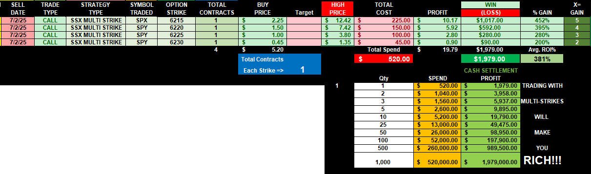 Strikes that fit the $1 Formula buy ranges with Cash Settlement!