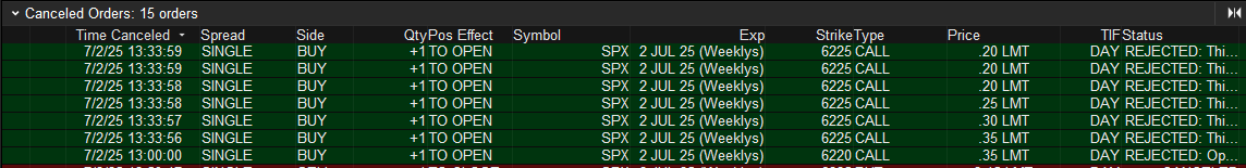 The 6225 C hit my max spend $0.65 and also closed cash settlement!