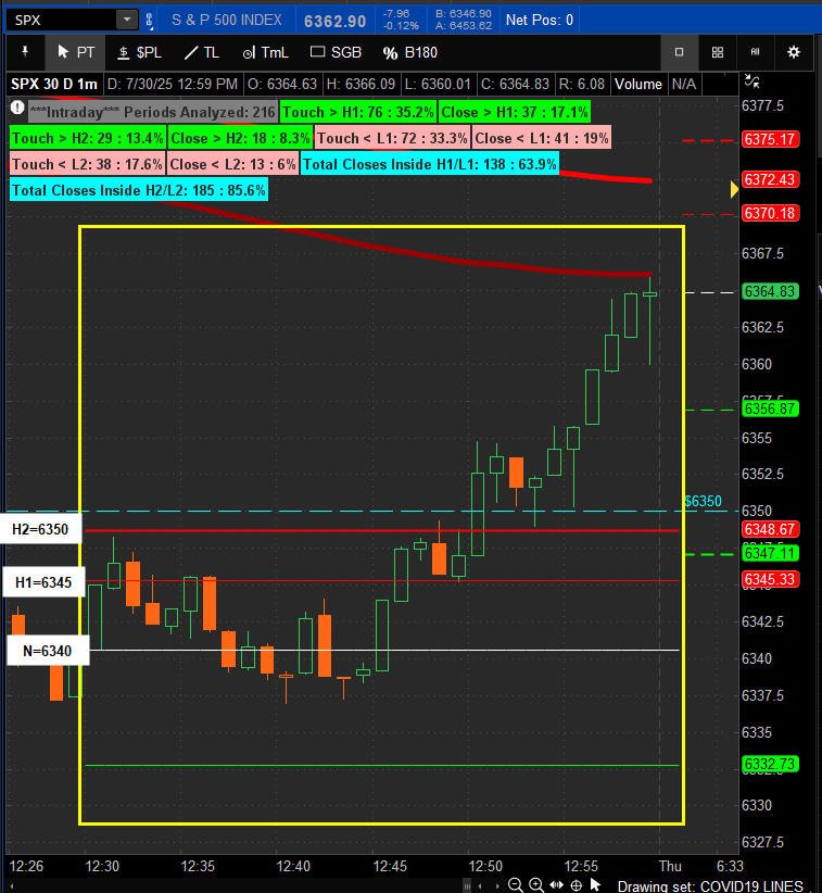 12:30 PM PST - Quant Pivot lines: Neutral = 6340 H1=6345 H2=6350 — CLOSE - 6362.90 -7.93 -0.12%
