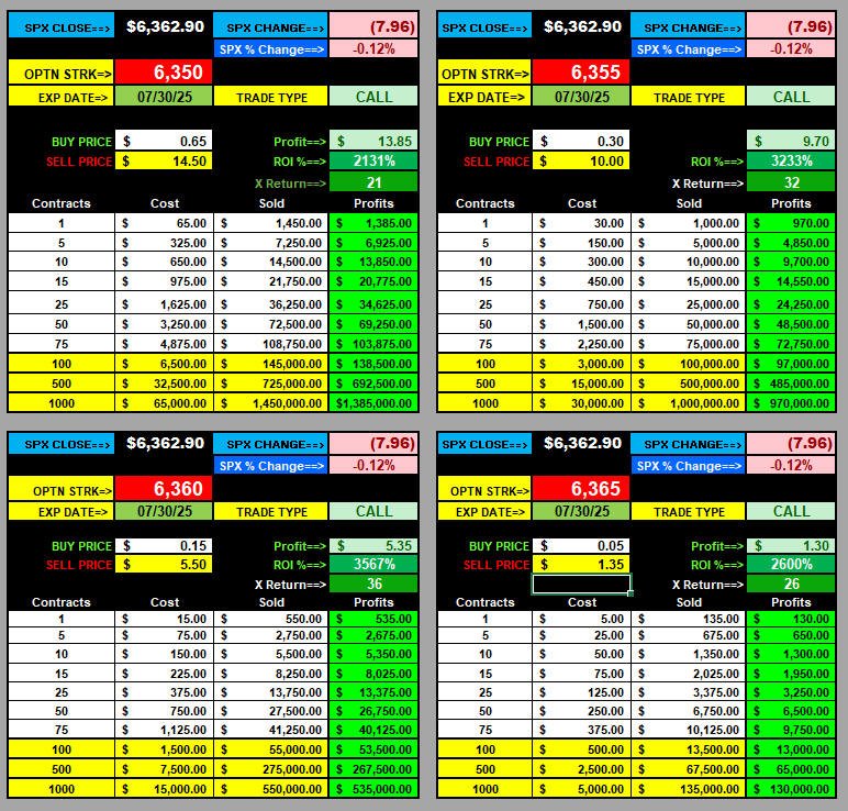 $1.00 Opening Formula Strike Ranges: CALLS 6430 / PUTS 6330