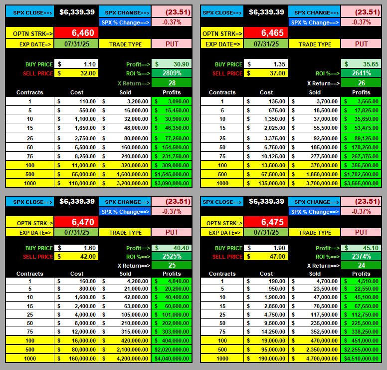 $1.00 Opening Formula Strike Ranges: CALLS 6475 / PUTS 6375