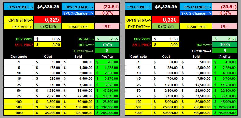 7-31-25 EOD LOTTO TRADES: