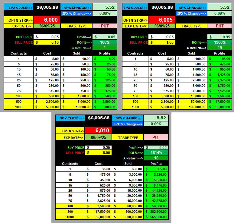 $1.00 Opening Formula Strike Ranges: CALLS 6055 / PUTS 5955