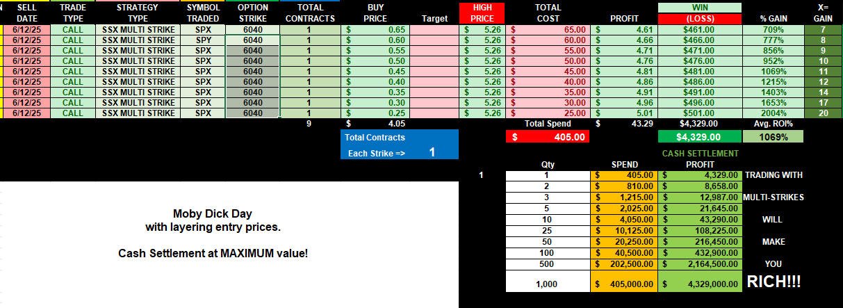 Today, the neutral 6040 CALL strike nailed a perfect entry after imbalances and rocketed into the close for a Moby Dick 21X CASH SETTLEMENT!!