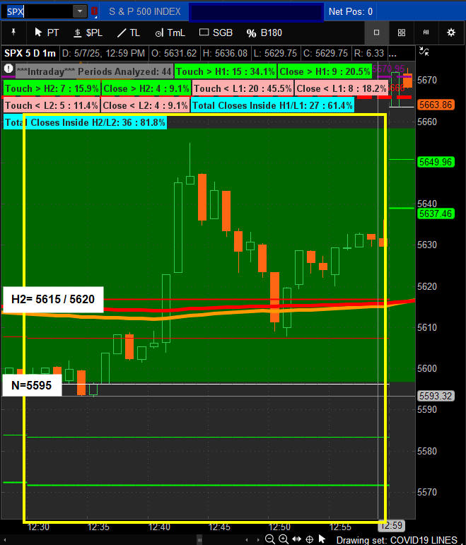12:30 PM PST - Quant Pivot lines: Neutral =5595 H2 = 5615 / 5620 - CLOSE - 5633.07 — +21.22 (Fibonacci and "33" close!)
