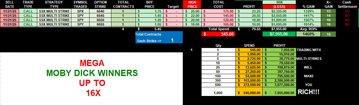 $1.00 Opening Formula Strike Ranges: CALLS 6605 / PUTS 6505