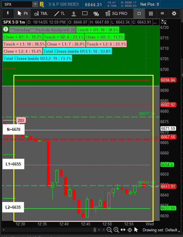 12:30 PM PST - Quant Pivot lines: Neutral = 6670 L1= 6655 L2=6635 —