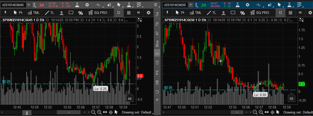 Today, the EOD strikes were massive success at 12:30 PM PST but at post imbalances, only the 6645 strike was a winner if you had your layers on and profit taking orders in place.