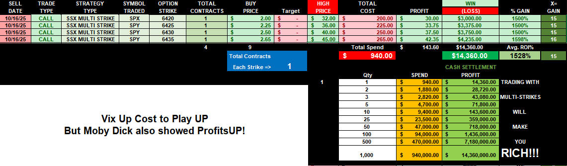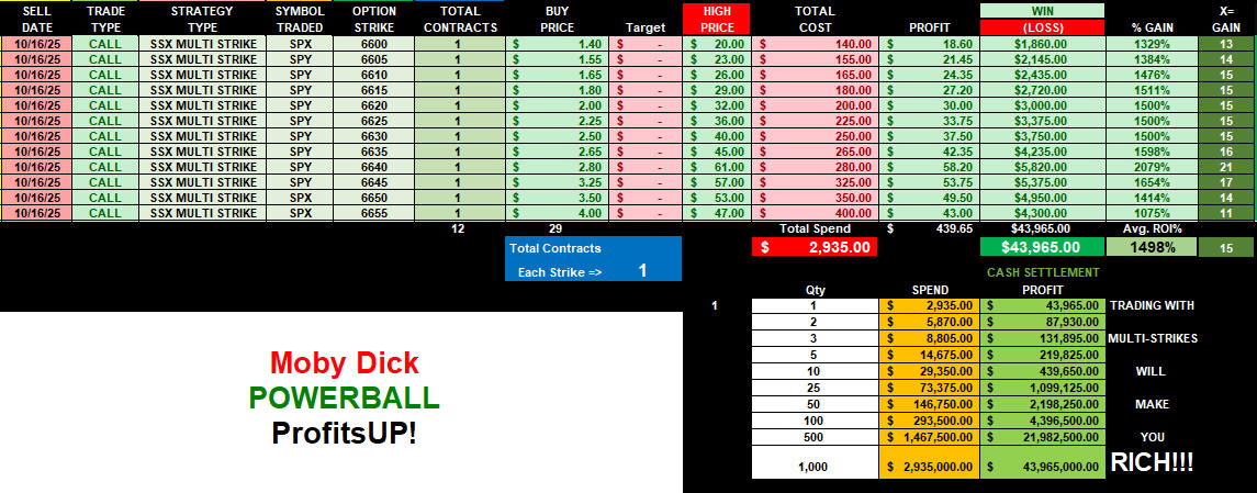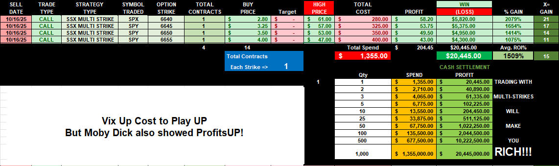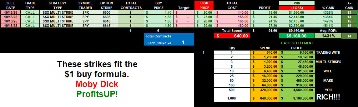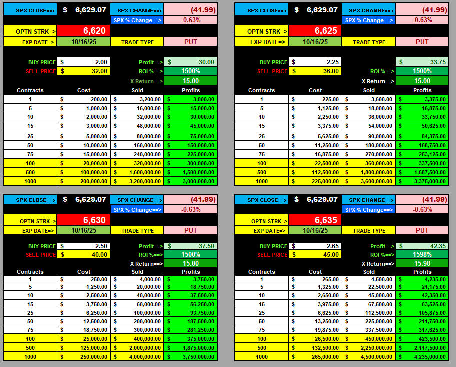 $1.00 Opening Formula Strike Ranges: CALLS 6740 / PUTS 6640