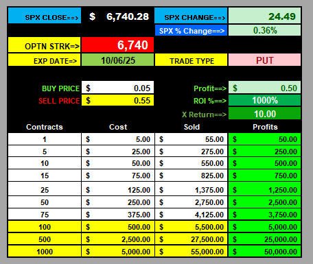 October 6, 2025 SPX -