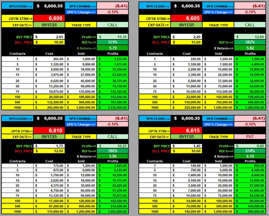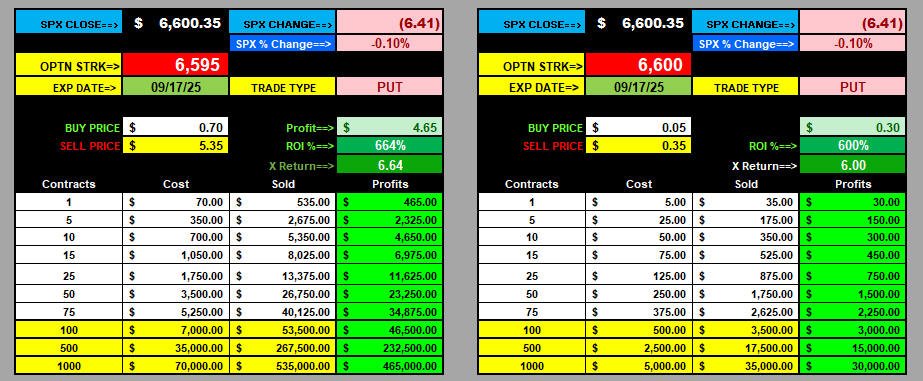 $1.00 Opening Formula Strike Ranges: CALLS 6655 / PUTS 6555