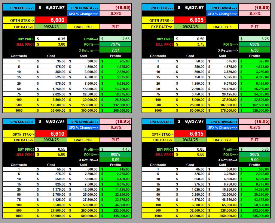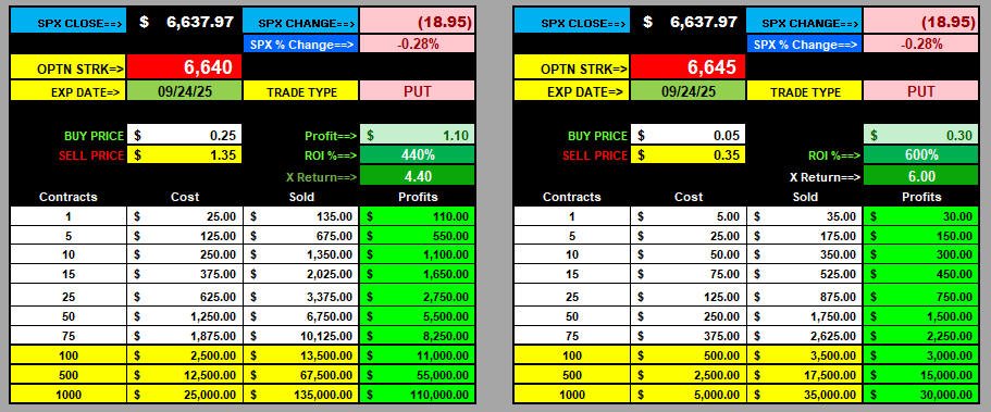 $1.00 Opening Formula Strike Ranges: CALLS 6720 / PUTS 6620