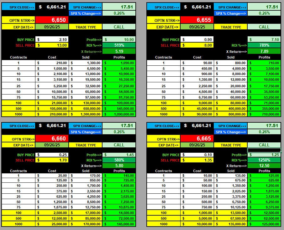 $1.00 Opening Formula Strike Ranges: CALLS 6710 / PUTS 6610