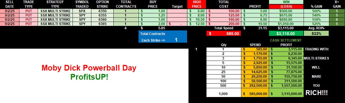 Other CALL strikes that fit the $1 Formula buy ranges: MOBY DICK POWERBALL DoubleUP! day $$$$$$$$$$