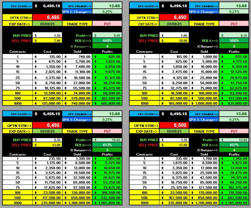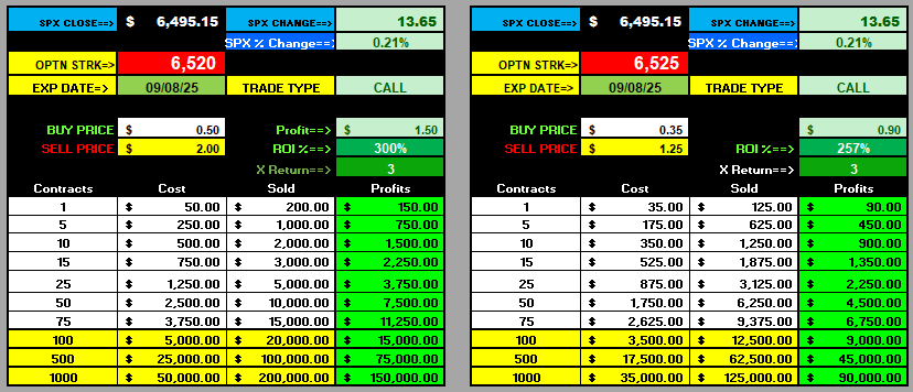 $1.00 Opening Formula Strike Ranges: CALLS 6550 / PUTS 6450